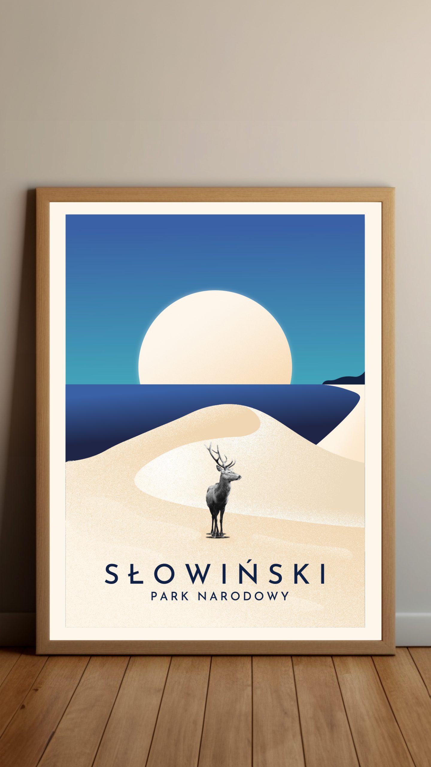 Plakat przenosi nas w sentymentalną podróż do Słowińskiego Parku Narodowego, nad polskie morze – czy to na wakacyjne destynacje, weekendowe wypady, czy po prostu do korzeni, do których lubimy powracać.